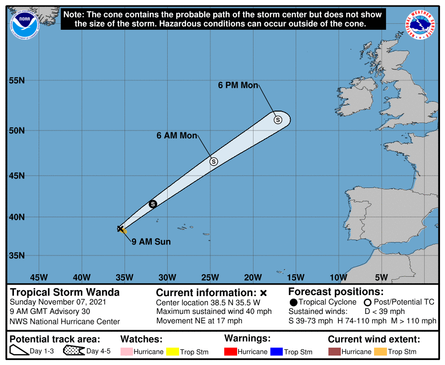Fait peu commun, une dépression tropicale se situe au large de l’Atlantique. Celle-ci prend la direction de l’Angleterre mais devrait perdre son caractère tropicale peu avant son arrivée sur les îles britanniques. Ce phénomène est déjà arrivé plusieurs fois par le passé mais le changement climatique tend à multiplier ces phénomènes à des latitudes de plus en plus septentrionales.